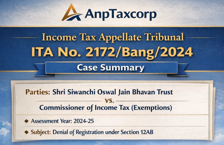 The Income Tax Appellate Tribunal (ITAT), Bangalore Bench has delivered a significant ruling in ITA No. 2172/Bang/2024, reinforcing the legal position that newly formed charitable trusts cannot be denied registration merely due to limited commencement of activities. The case of Shri Siwanchi Oswal …