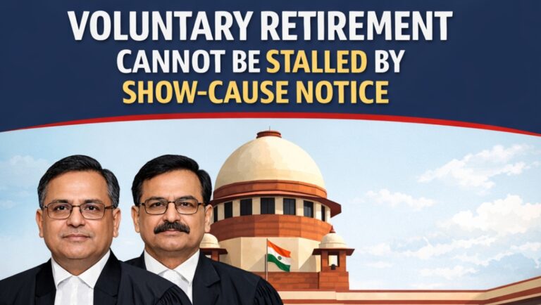 In a significant ruling reinforcing employee rights, the Supreme Court of India has held that an employer cannot block an employee’s voluntary retirement simply by issuing a show-cause notice, without initiating formal disciplinary proceedings within the prescribed notice period. The …