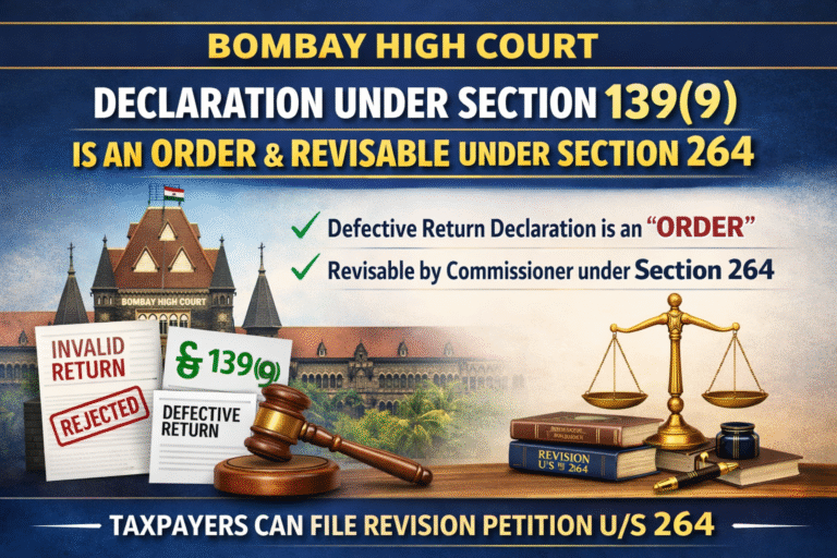 The Bombay High Court has held that a declaration issued by the Income Tax Department under section 139(9), treating a return as defective or invalid, is not merely an administrative communication but constitutes an order in law. The Court clarified that since such a declaration has serious civil consequences for the assessee, it is subject to revisionary jurisdiction under section 264. This ruling strengthens taxpayers’ remedies by confirming that defective return declarations can be challenged through revision before the Commissioner.