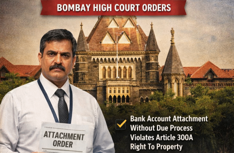 In a significant ruling reinforcing taxpayer rights and procedural safeguards, the Bombay High Court has held that unlawful attachment of a bank account without adherence to statutory requirements amounts to a violation of the constitutional right to property under Article 300A of the Constitution of India. The Court not only quashed the impugned attachment orders but also imposed costs of ₹25,000 on the concerned officer, underscoring the seriousness of arbitrary administrative action.