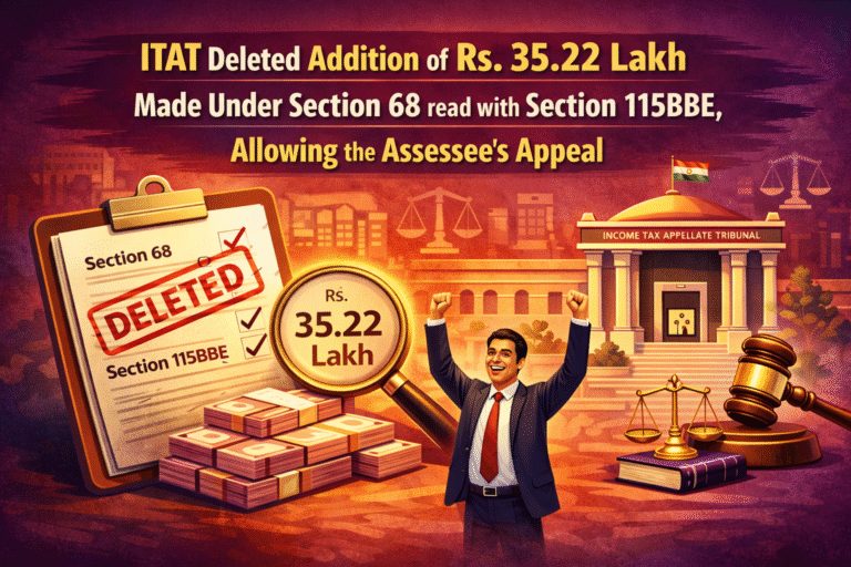 Accordingly, the ITAT deleted the addition of Rs. 35.22 lakh made under Section 68 read with Section 115BBE, allowing the assessee’s appeal.