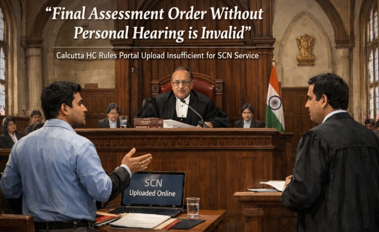 The Calcutta High Court has once again reinforced the foundational principle of natural justice by holding that a final assessment order passed without granting a personal hearing is legally unsustainable—even in cases where a pre–show cause notice (SCN) hearing is not explicitly mandated.