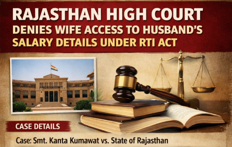 In a significant judgment delivered on February 20, 2026, the Rajasthan High Court ruled that a wife cannot seek her husband’s salary details under the Right to Information (RTI) Act, holding that such information constitutes “personal information” and is exempt from disclosure.