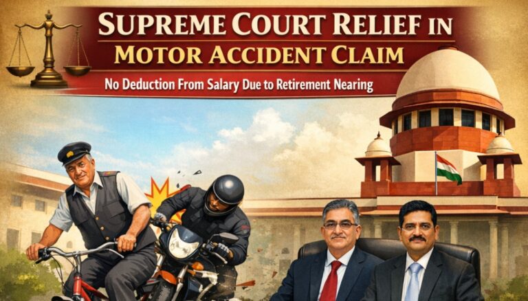 In a significant ruling reinforcing fairness in motor accident compensation cases, the Supreme Court of India has held that no arbitrary deduction can be made from the salary of a deceased person merely because they were nearing retirement. The judgment brings clarity to the method of calculating compensation and strengthens the rights of claimants under motor accident laws.