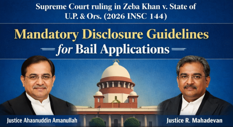 In a significant judgment aimed at strengthening transparency in criminal proceedings, the Supreme Court of India in Zeba Khan v. State of U.P. & Ors. (2026 INSC 144) set aside a bail order granted by the Allahabad High Court and introduced a mandatory disclosure framework for all bail applications across the country.