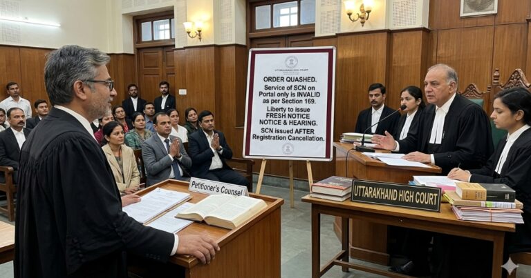 In the case of [2026] 184 taxmann.com 346 (Uttarakhand), the Court quashed a tax demand order on the grounds that a Show Cause Notice (SCN) served solely through the digital portal—after a taxpayer’s registration was cancelled—is legally invalid under Section 169 of the CGST/UKGST Act.